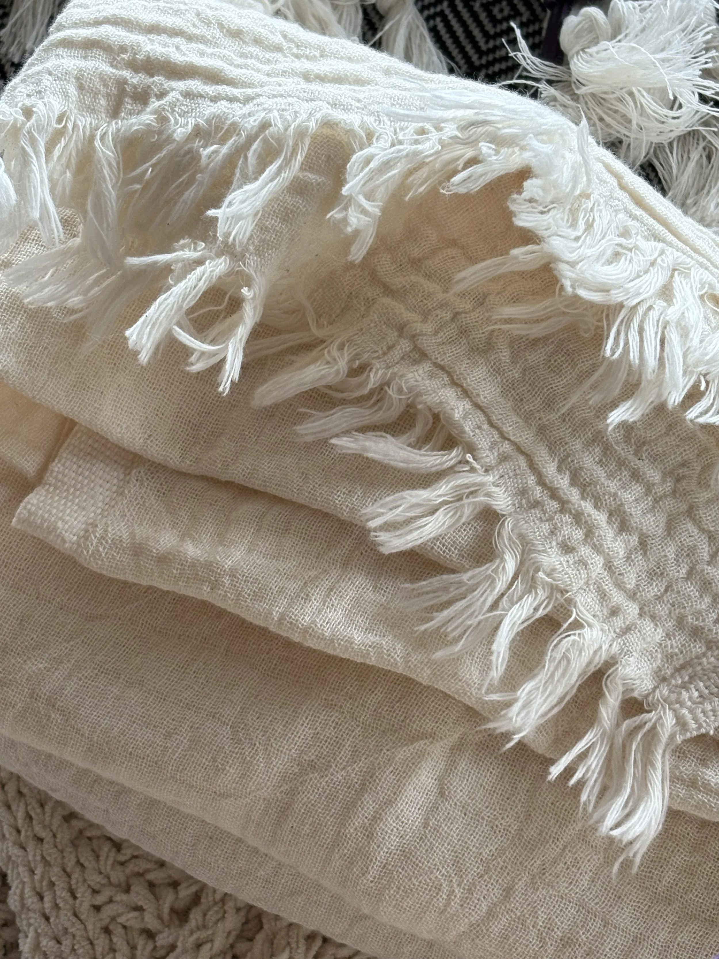 Choose from black & white flat weave or flowy white muslin linen.
